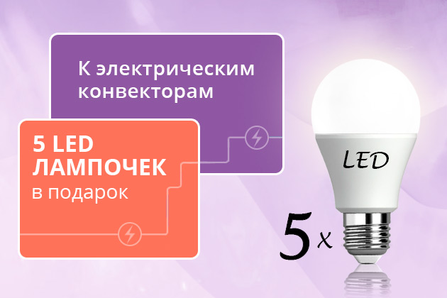 При покупке конвекторов Вы получаете комплект из 5 LED-лампочек в подарок.