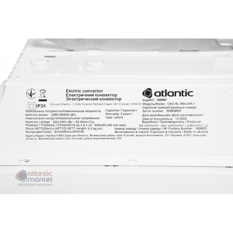 | Характеристики конвектора Atlantic F19 CEG BL-Meca/M2 2500W | |