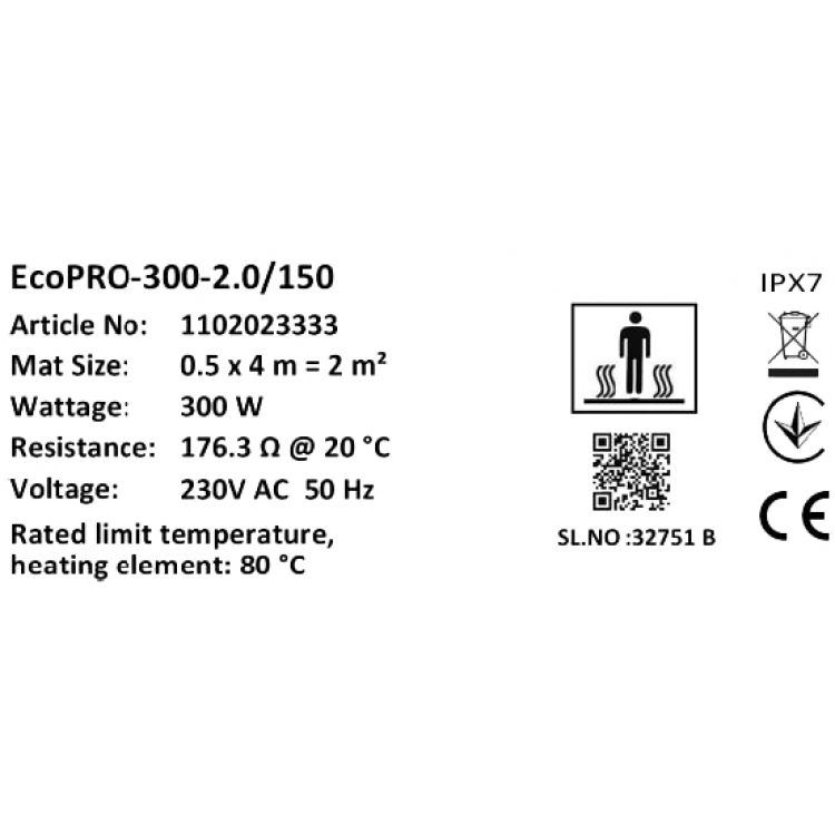 Характеристики Warmstad Max EcoPRO-300-2.0/150 W/m2 с терморегулятором RTP