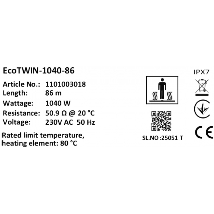 Характеристики Warmstad Max EcoTWIN-1040-86 W/m с терморегулятором RTP