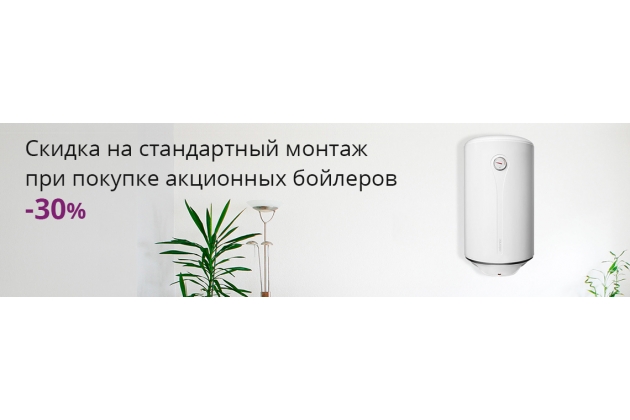 Скидка -30% на стандартный монтаж при покупке акционных бойлеров