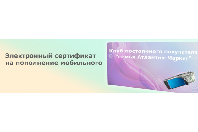 Сейчас участники акции “семья Атлантик” могут получить электронный сертификат пополнение мобильного телефона.**