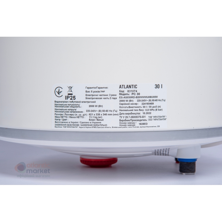 | Характеристики водонагревателя Atlantic O’Pro Slim PC 30 | |