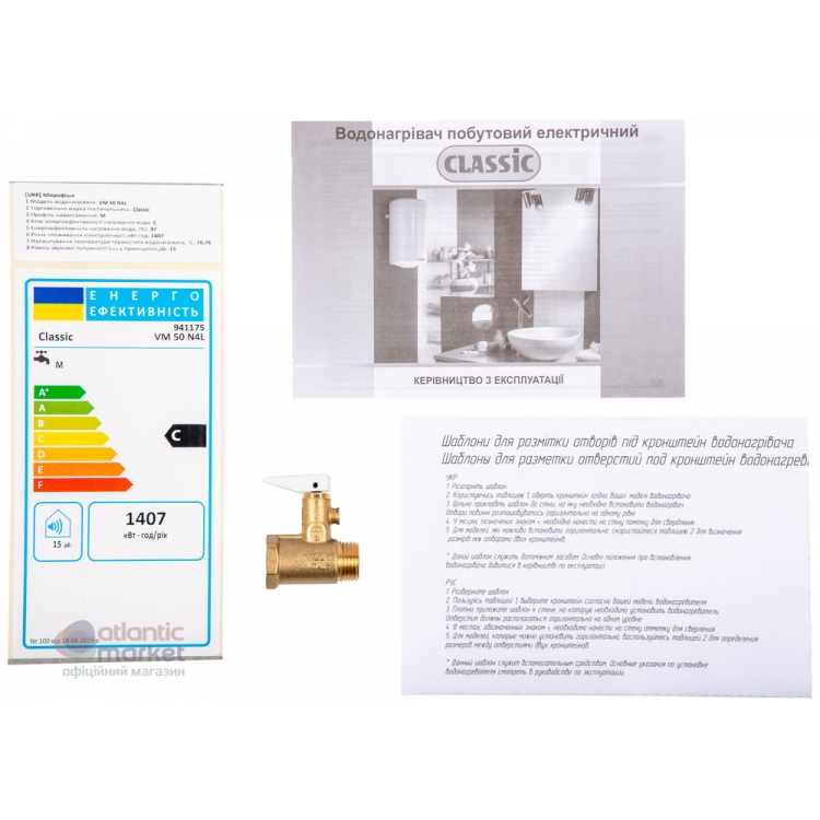 | Характеристики водонагревателя Classic VM 50 N4L (Atlantic) | |