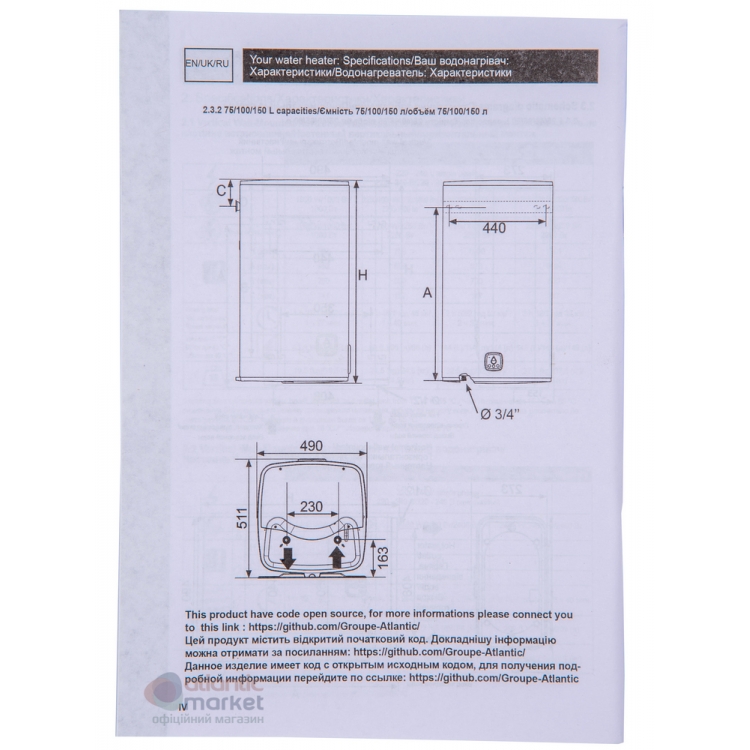 | Дополнительно Atlantic Steatite Cube WI-FI ES-VM 100 S4 C2 WD (2400W) white | |