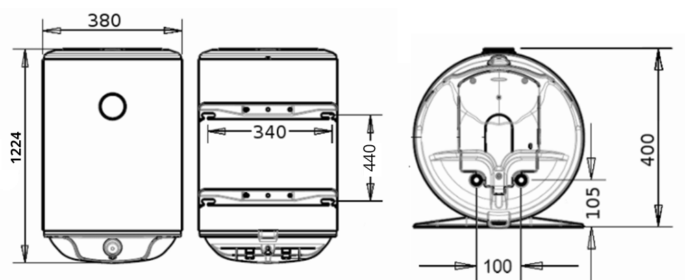 | Тепловые потери, кВт/24 ч при 65°C | Вертикально 1.41 / Горизонтально 1.66 |